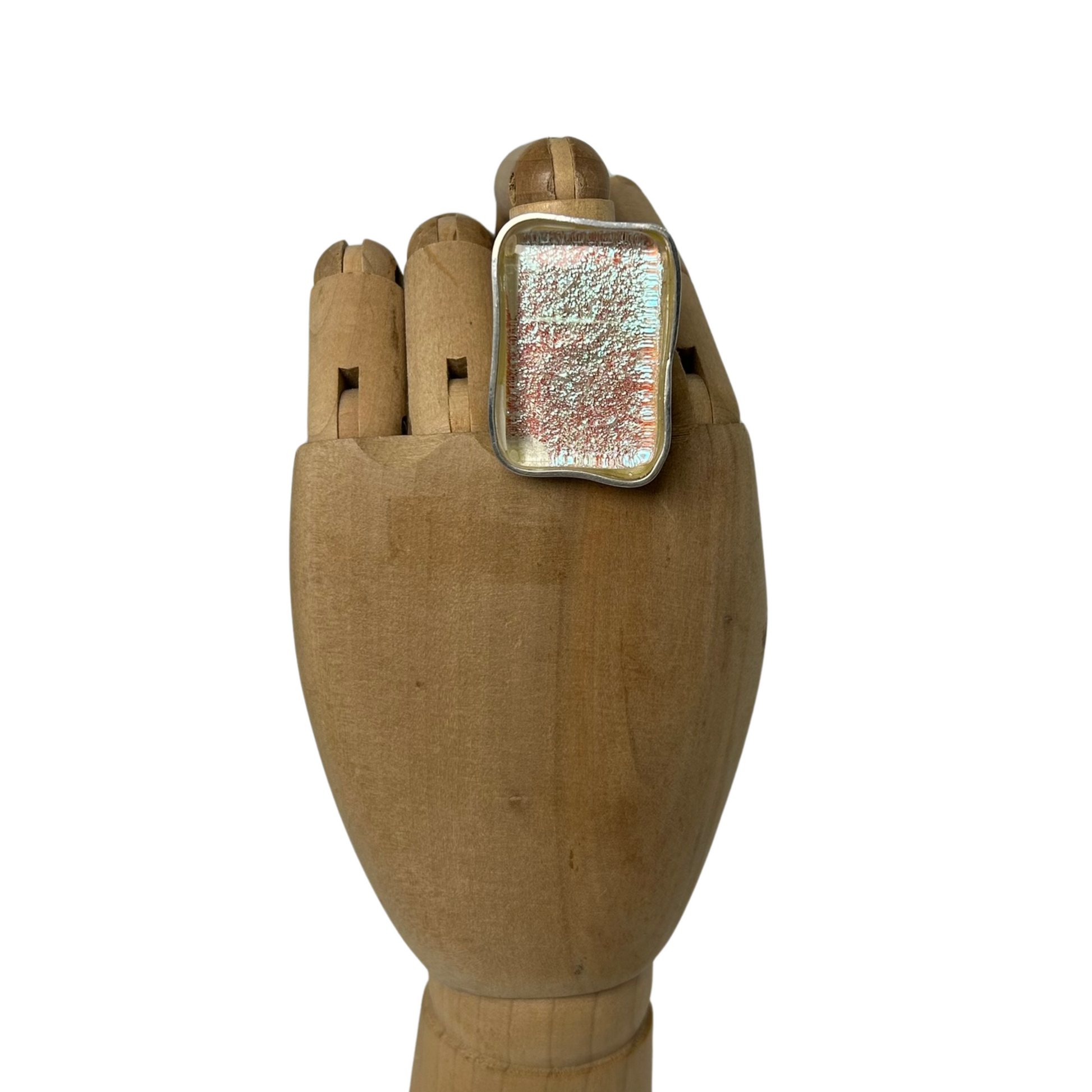 Anel de prata ajustável, com vidro metalizado furta-cor.