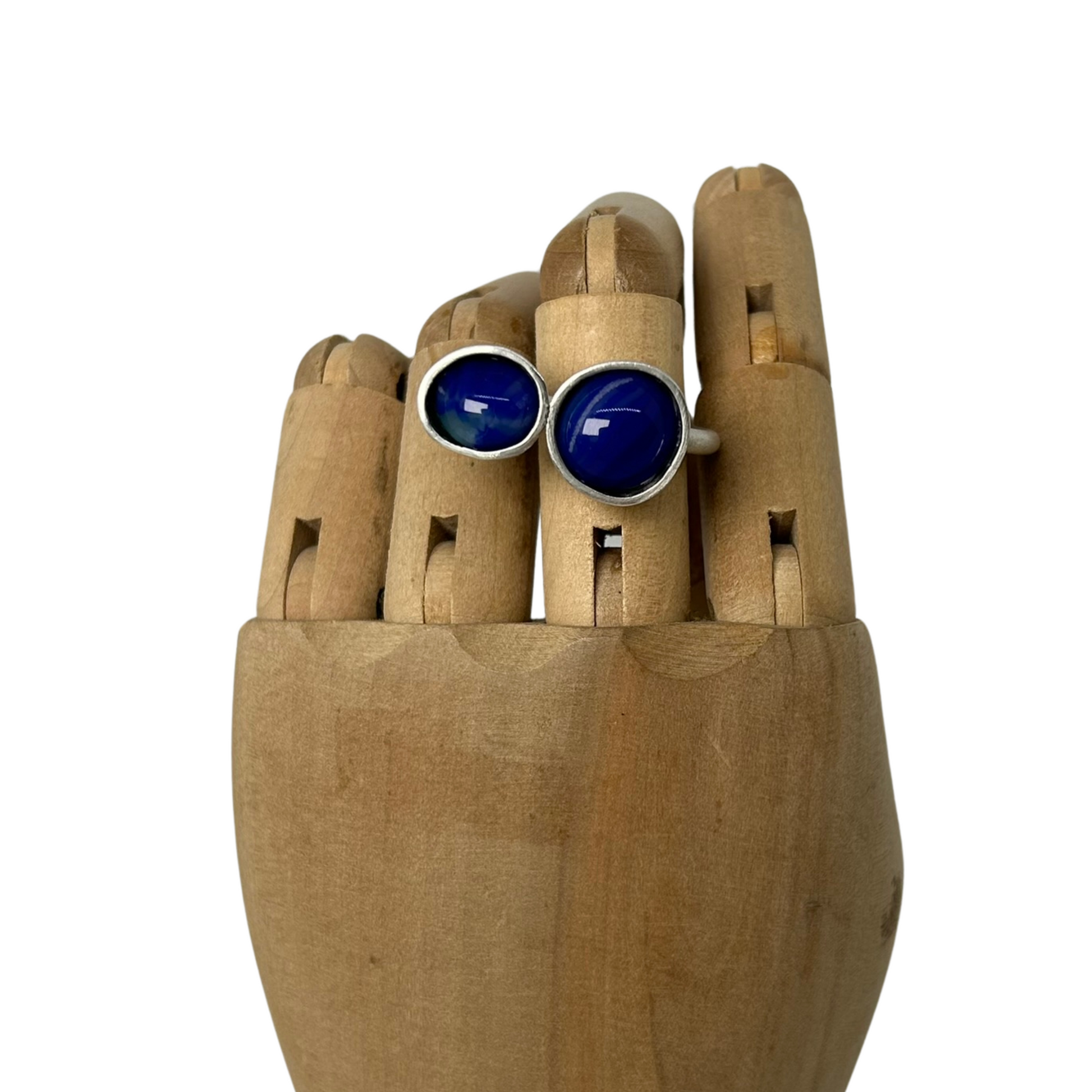 Anel de prata ajustável com vidro azul.