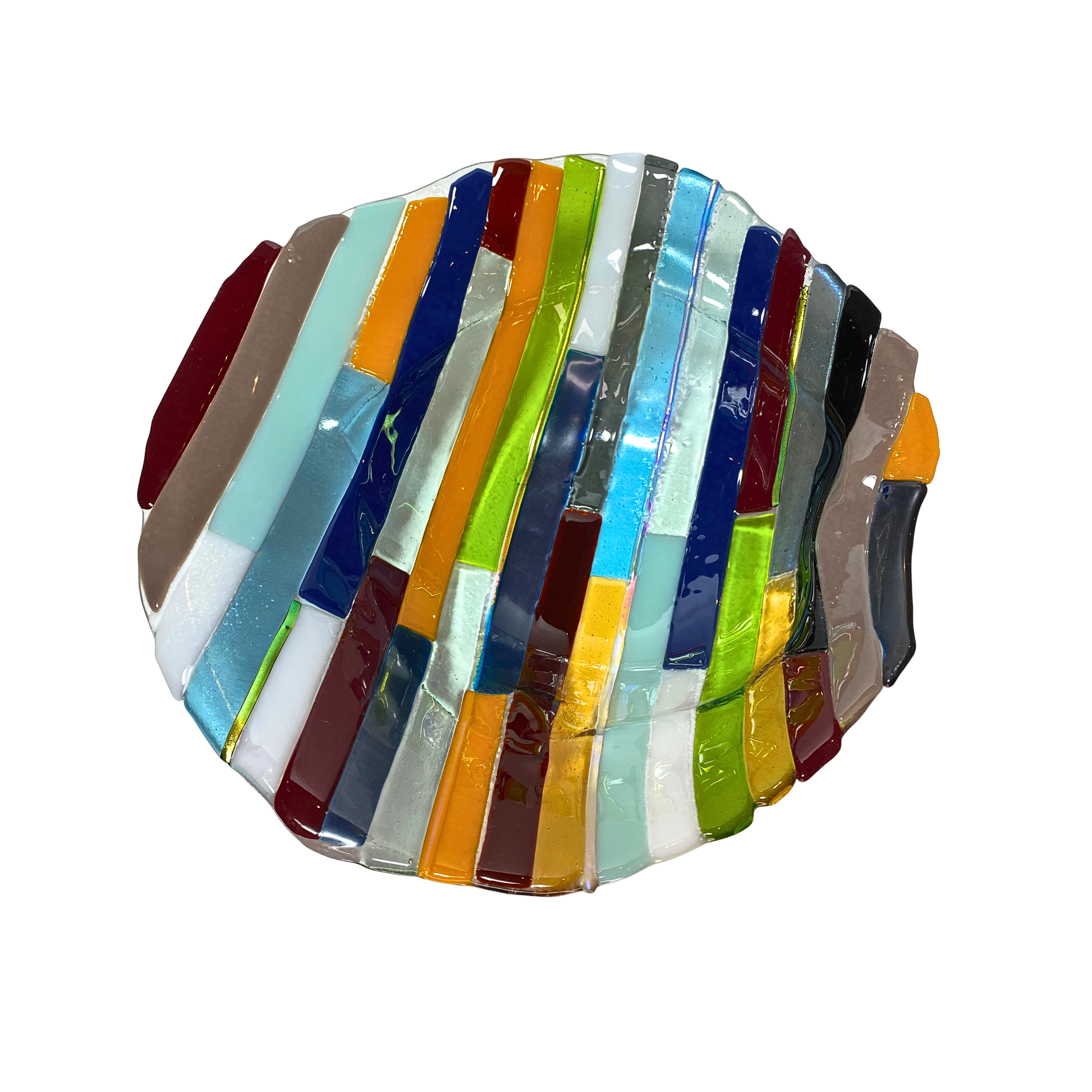 Bowl de vidros em várias cores e detalhes em fios e cristais de vidro.