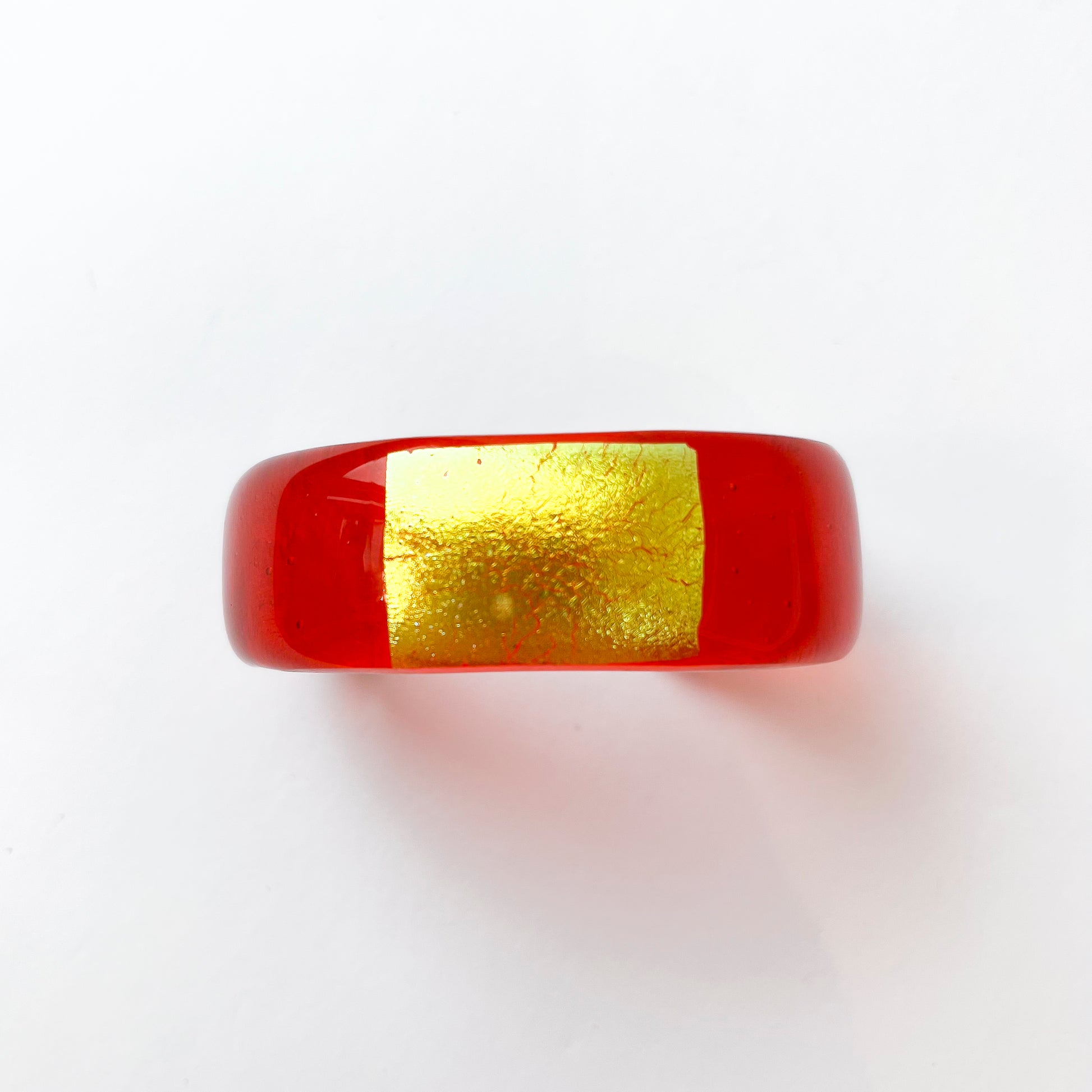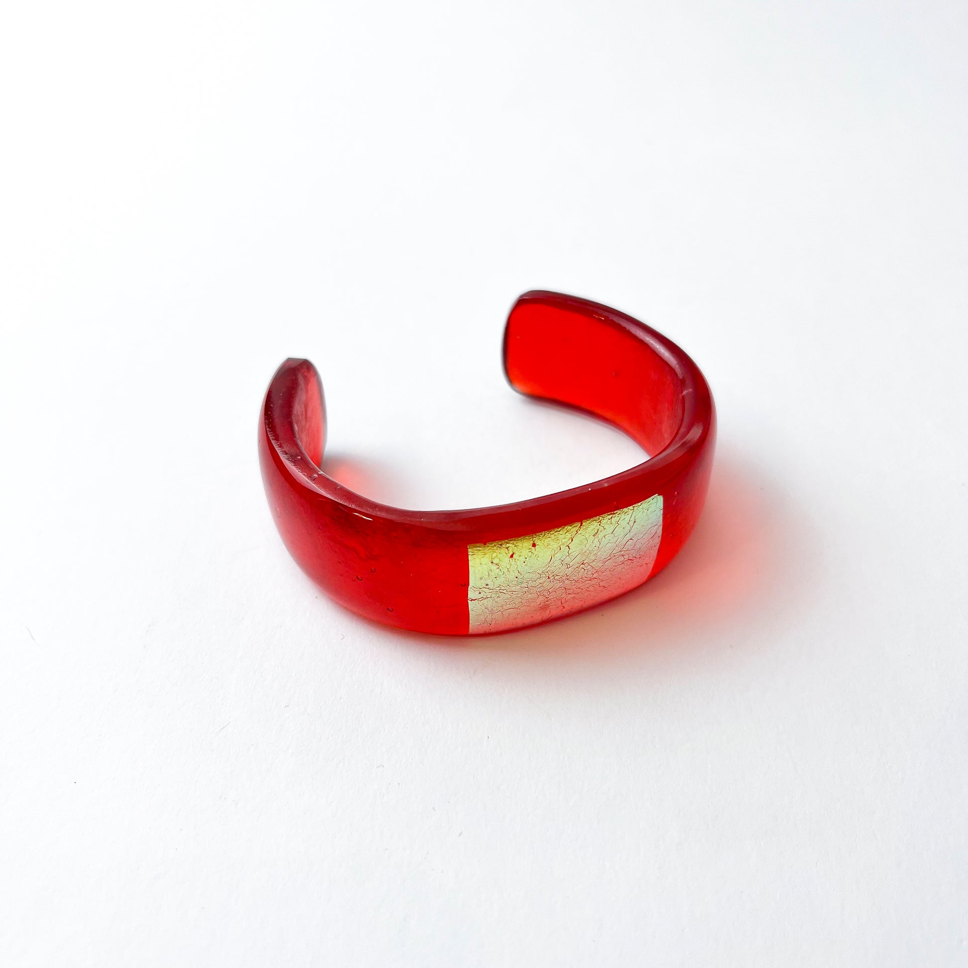 Bracelete de vidro verde com detalhe em vidro metalizado.