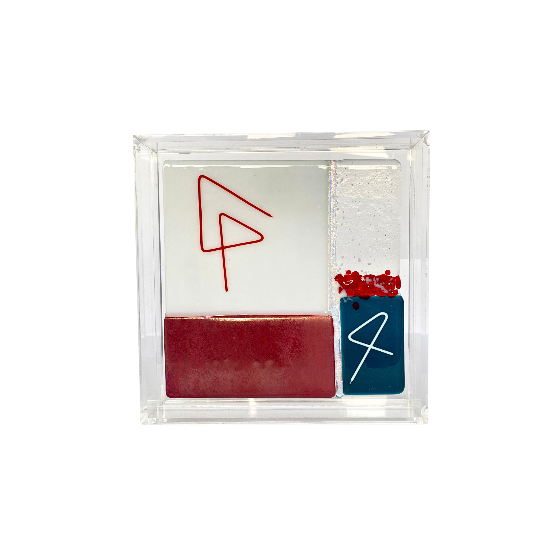 Tela vetro de vidros em várias cores com detalhes em cristais, placas, fios colorido e metalizado. (18x18cm)