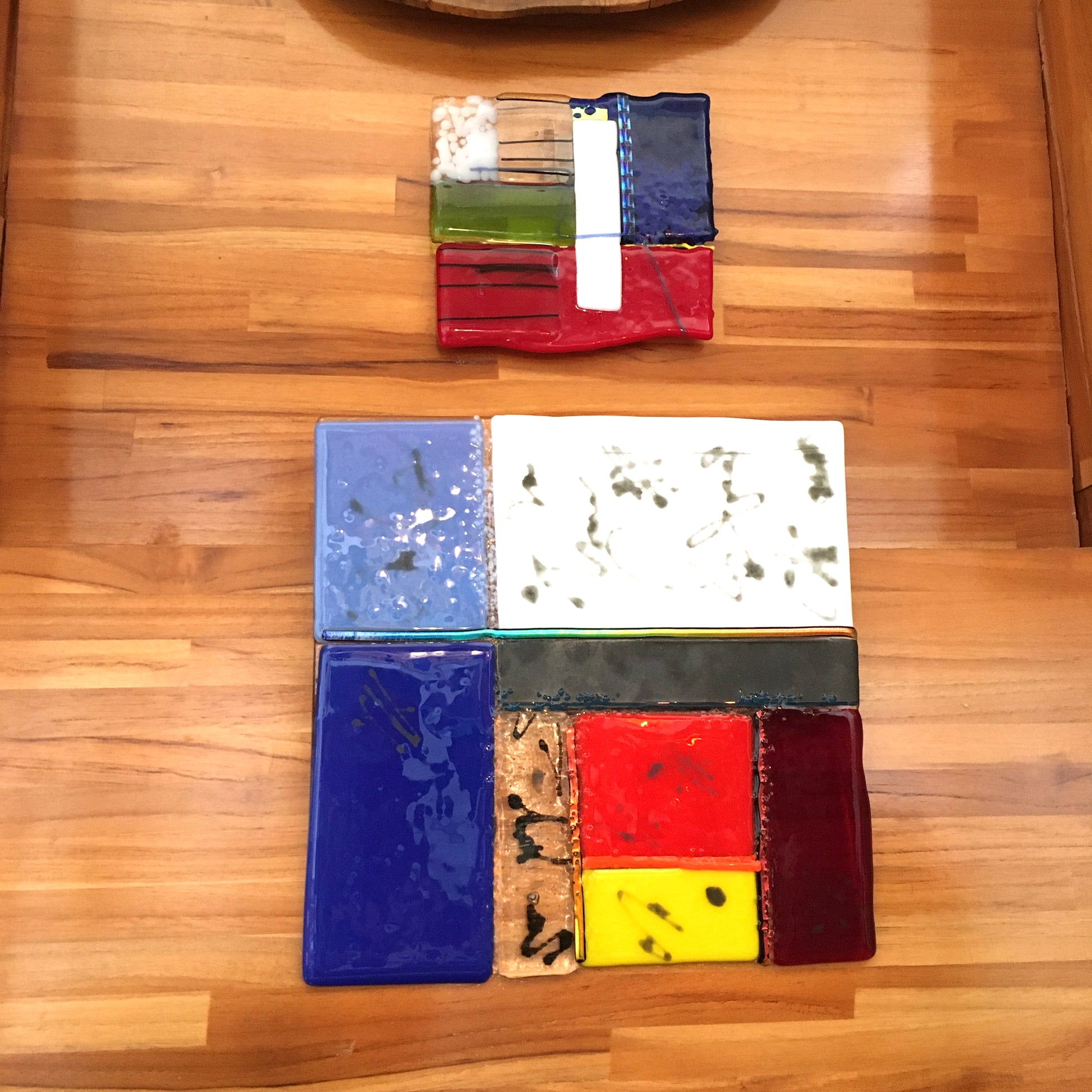 Tela Vetro de vidros em várias cores com detalhes em cristais e fios coloridos e metalizado.