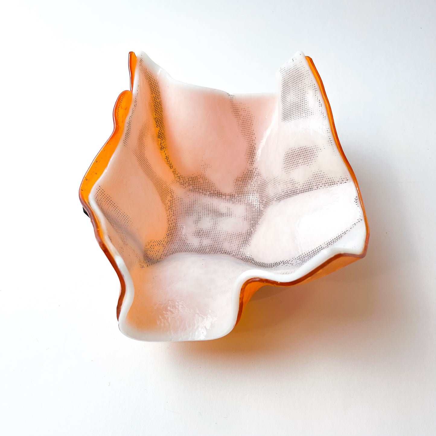 Vaso Fazzoletto de vidros amarelo e branco com detalhe em fio metalizado.